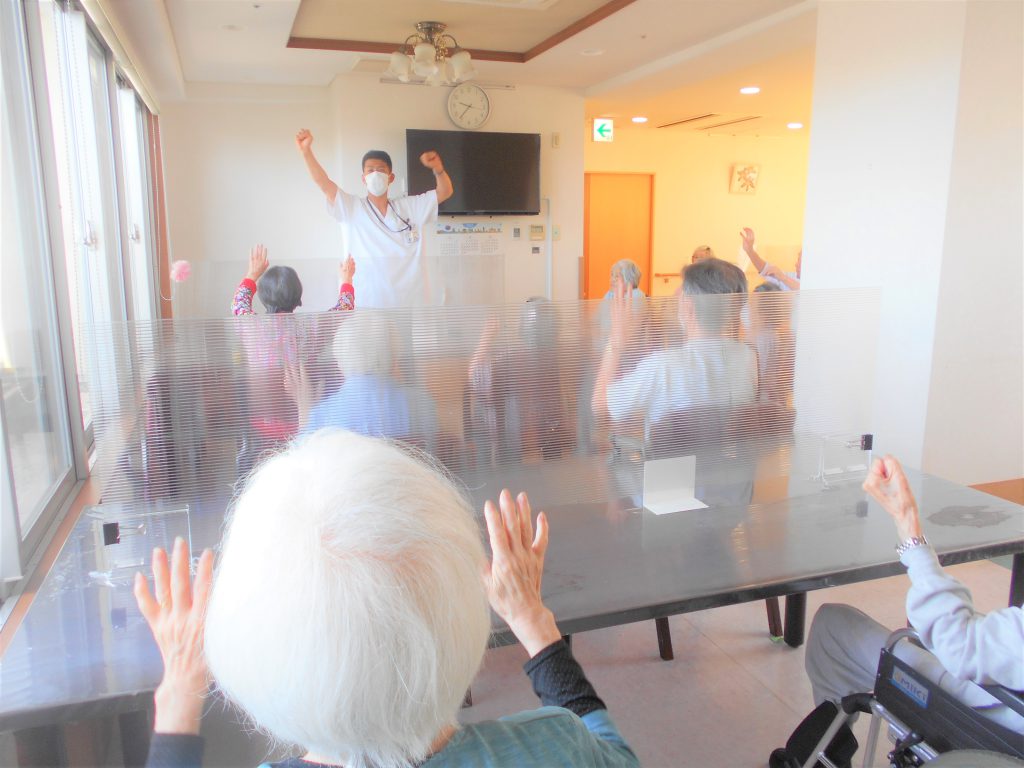 職員も見守りながら体操をし、皆さまと元気な朝を過ごしております。