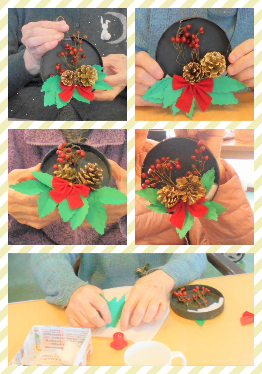 冬の足音を聞きながら、朋央でも一足早くクリスマスのリース作りに挑戦して頂きました。