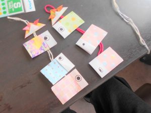 折り紙でミニこいのぼりを作るレクリエーションを行いました。